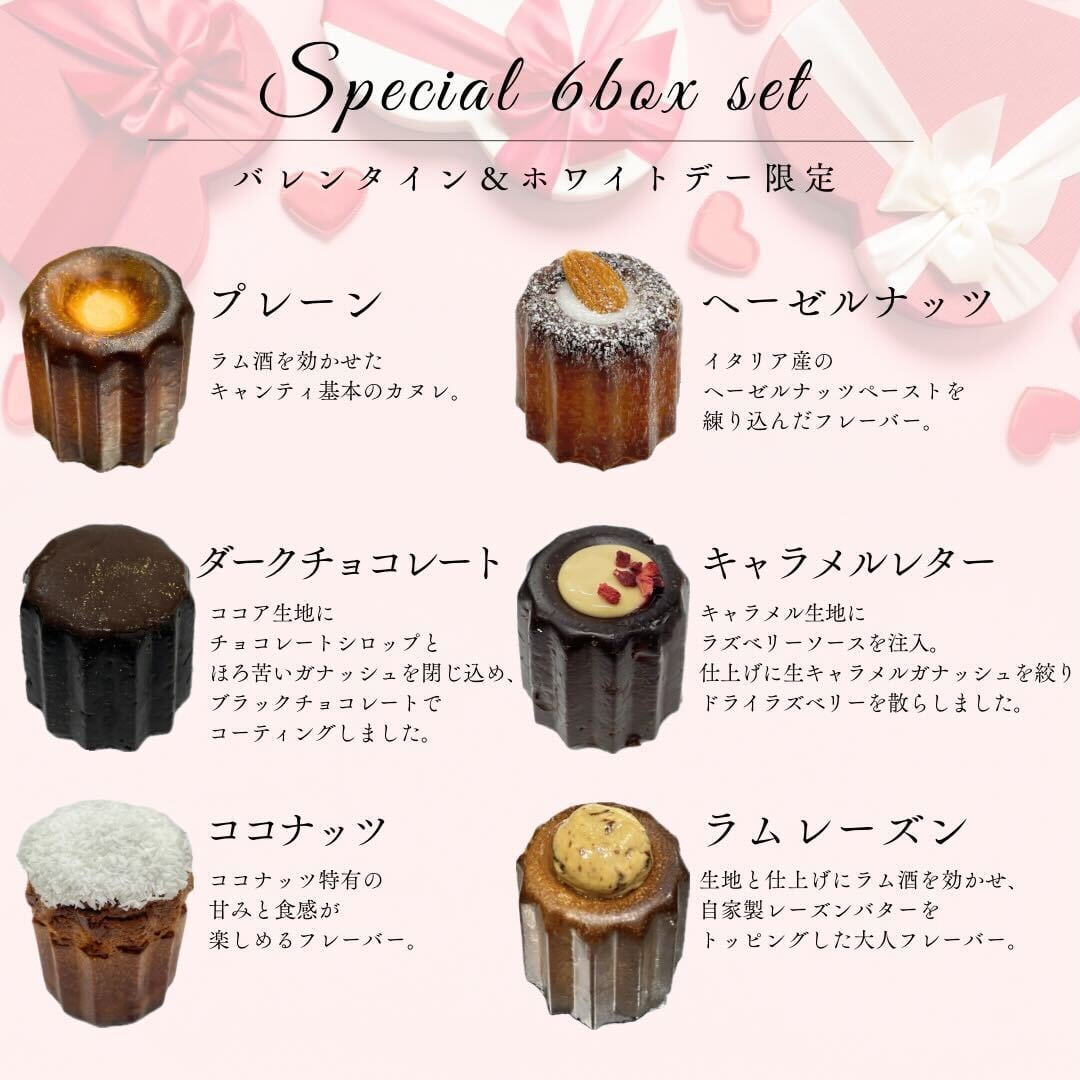 【メッセージカード付】バレンタイン/ホワイトデー限定カヌレ6個SET canelé de CHIANTI オリジナルカヌレ